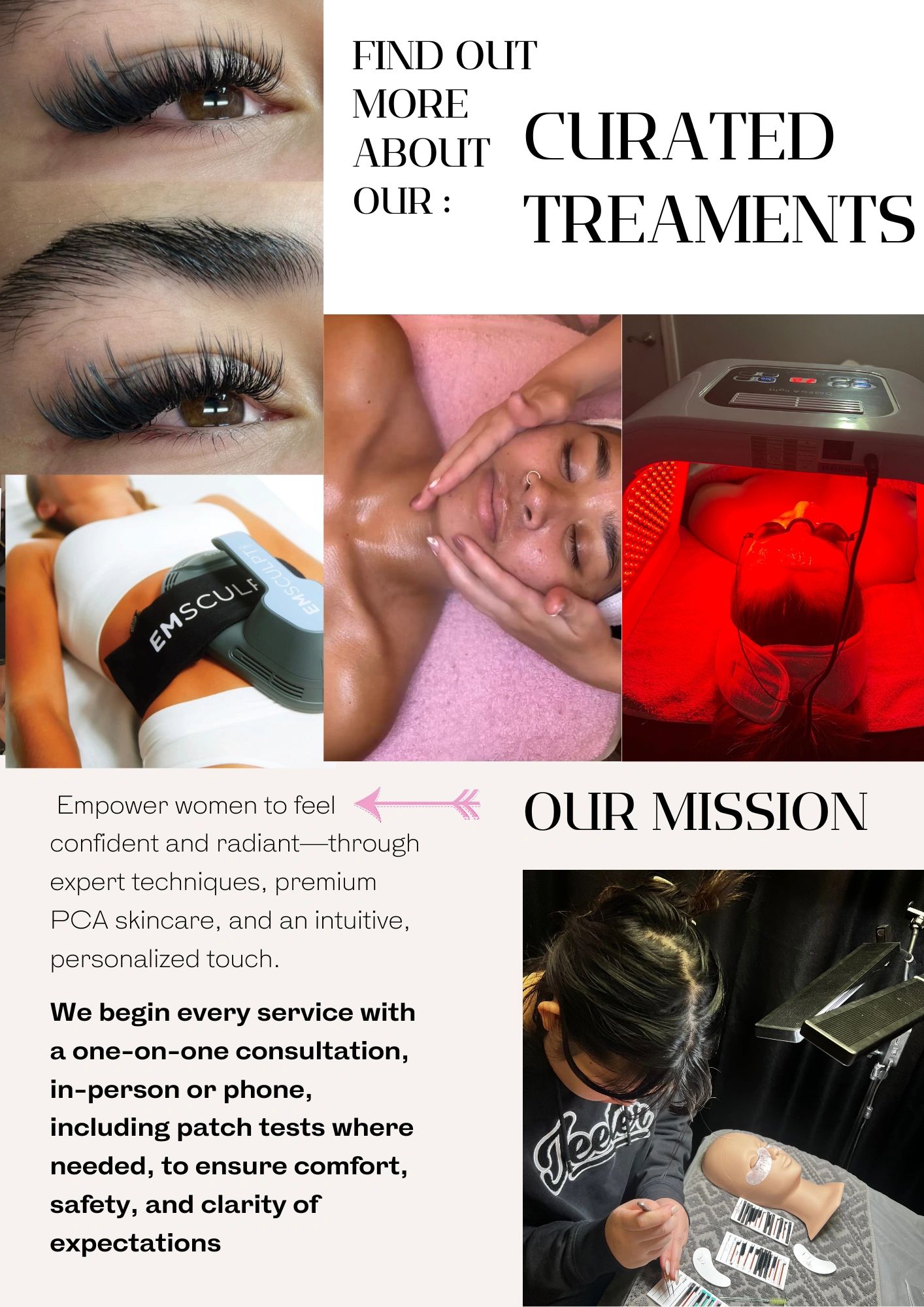 We're experts at what we do. But knowing the best techniques is only part of the process, we're also here to make you feel great. Whether you're here for a one-hour facial, or a full set of lashes, our spa and beauty services are always focused on the clients comfort and safety. All employs get extensive trains to go above and beyond for our wonderful client.